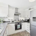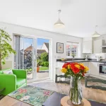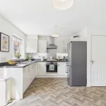Inside, the home features a spacious lounge ideal for relaxing and entertaining, while the stunning open-plan dining kitchen is fitted with sleek high-gloss units and integrated appliances, creating a stylish and practical space for everyday living. French doors open directly onto the rear garden, flooding the space with natural light and offering seamless access to the outdoors.