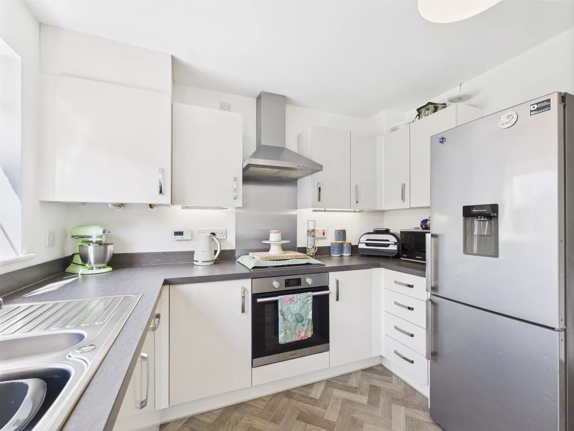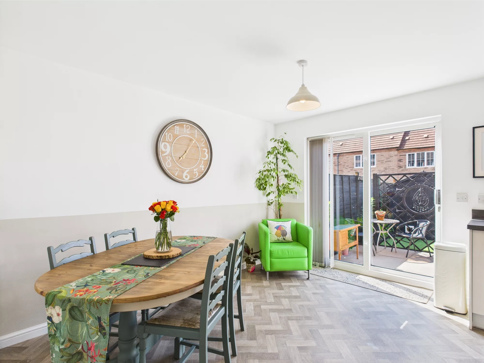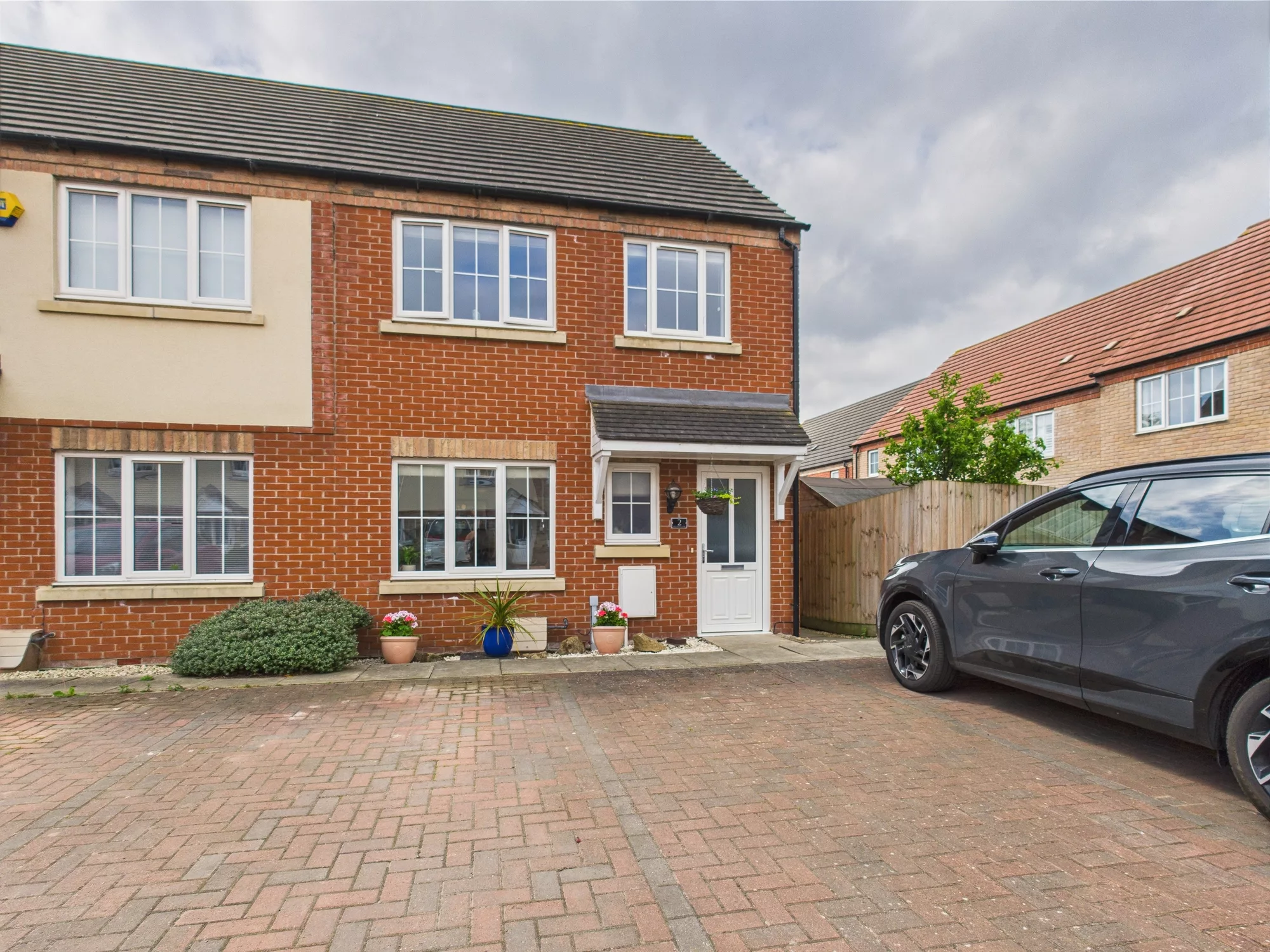 Externally, the property benefits from two private parking spaces to the front. The rear garden is beautifully landscaped and can be accessed via a side gate or directly from the kitchen diner, making it ideal for family gatherings or quiet evenings outdoors.