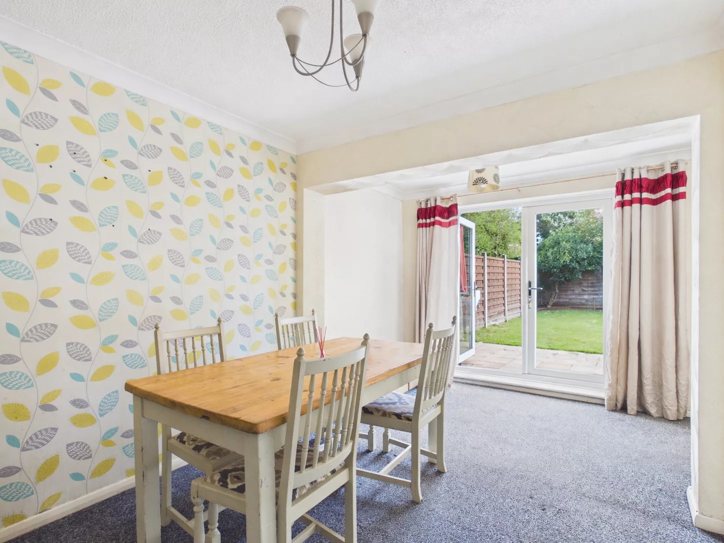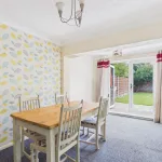 A cosy dining space featuring charming French doors, the room is filled with natural light and offers direct access to the garden, perfect for al fresco dining in the warmer months. Generously proportioned and adaptable, it provides an inviting setting for everything from relaxed family meals to more formal occasions.