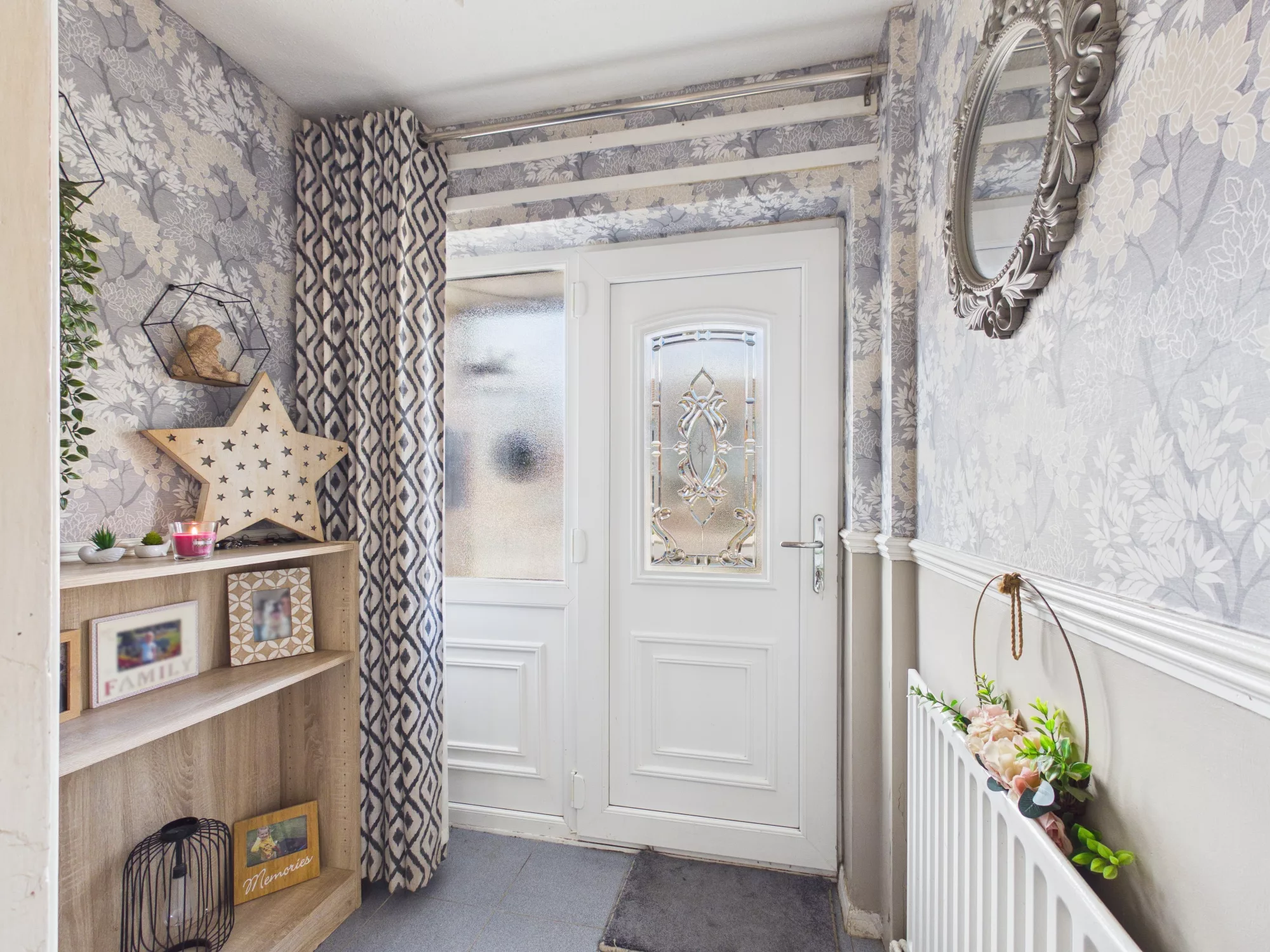 This cosy, welcoming entrance hall is a thoughtfully presented space that offers a bright and airy feel. It provides an ideal spot for coats and shoes to keep the home organised from the moment you step inside. Well-chosen finishes enhance the sense of light and space making it a warm and inviting introductory to the property.
