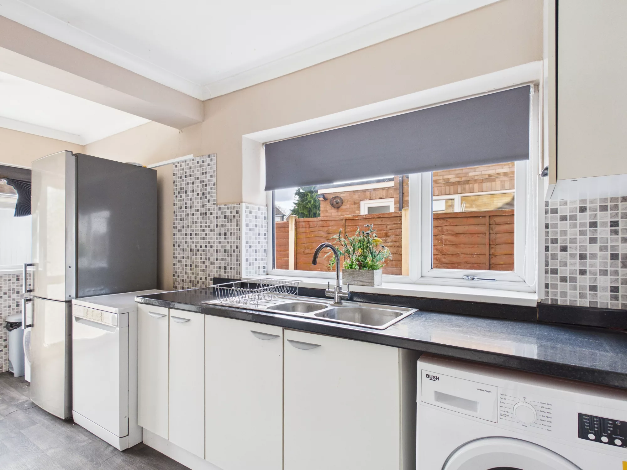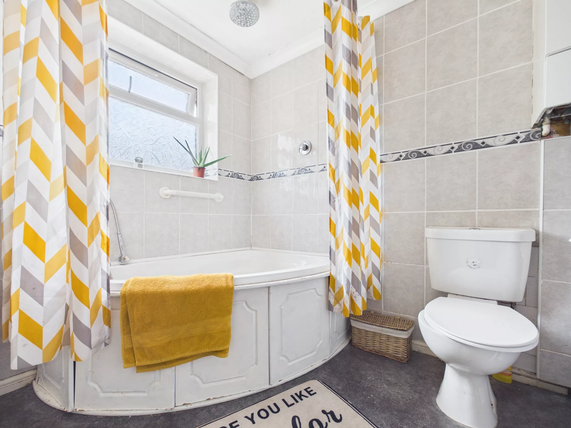Upstairs, the property continues to impress with three well-sized bedrooms. The main bedroom offers comfortable proportions with space for wardrobes and additional furniture, while the second bedroom is also a generous double. The third bedroom is ideal as a child’s room, guest room, or home office, catering to modern lifestyle needs. A family bathroom serves the first floor, fitted with essential components such as, the corner bath with over-head shower.