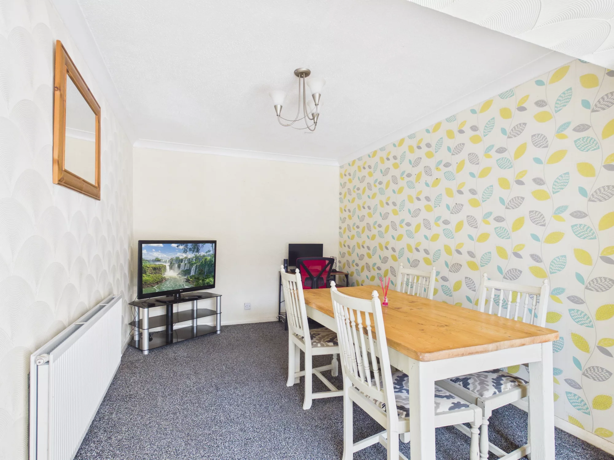 The kitchen is practical in layout, offering a good range of fitted units, work surfaces, and space for essential appliances. It also provides potential for modernisation or redesign into a contemporary open-plan kitchen/dining area, subject to individual requirements and permissions. Adjacent dining space allows for family meals and social gatherings, making the ground floor particularly versatile.
