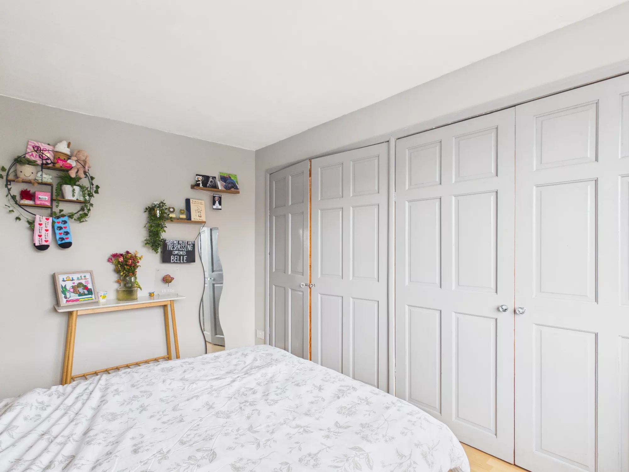 A comfortable rear-facing bedroom offering a quiet and restful atmosphere. The room is enhanced by a large window that draws in natural light, while the fitted wardrobes deliver generous built in storage, keeping the space neat and uncluttered.