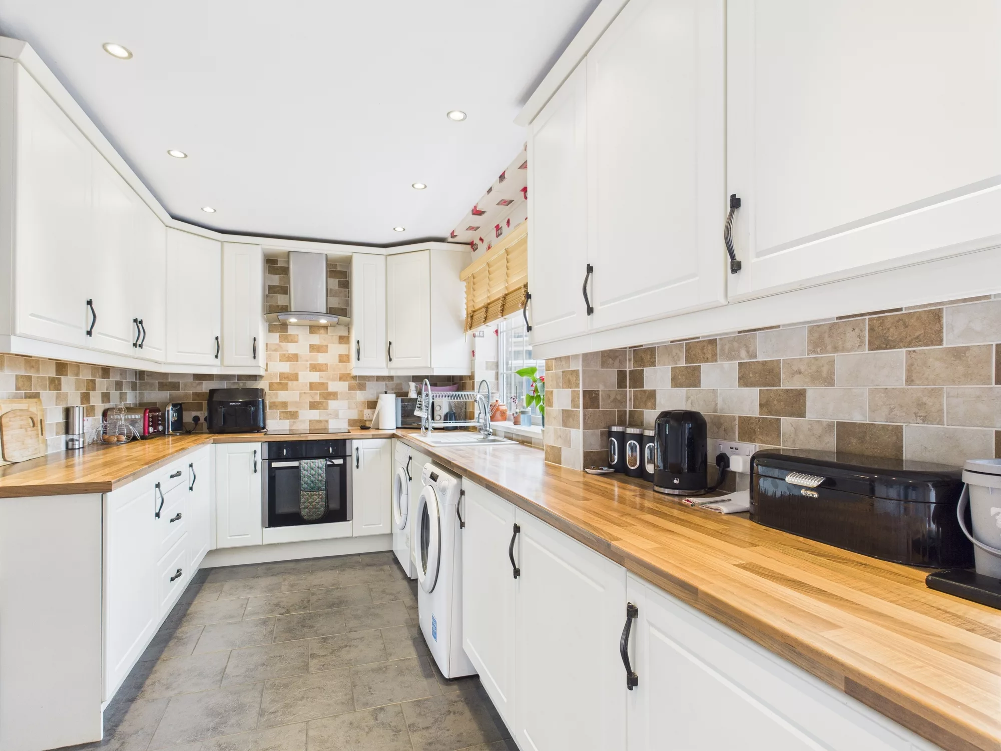 Outside, the home enjoys a superb corner position with gardens to the side and rear, offering excellent potential for outdoor living and relaxation. A block-paved driveway provides off-road parking for multiple vehicles, and there is the added bonus of a detached single garageโideal for secure storage or additional parking.