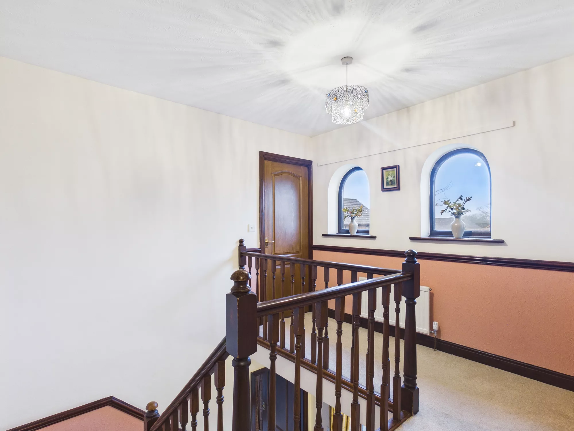 Upstairs, the open and light-filled landing is enhanced by two striking arched windows to the front elevation. The property boasts four generous double bedrooms, with the impressive master suite benefitting from its own dressing room and en-suite shower room. A well-appointed family bathroom completes the first-floor accommodation.