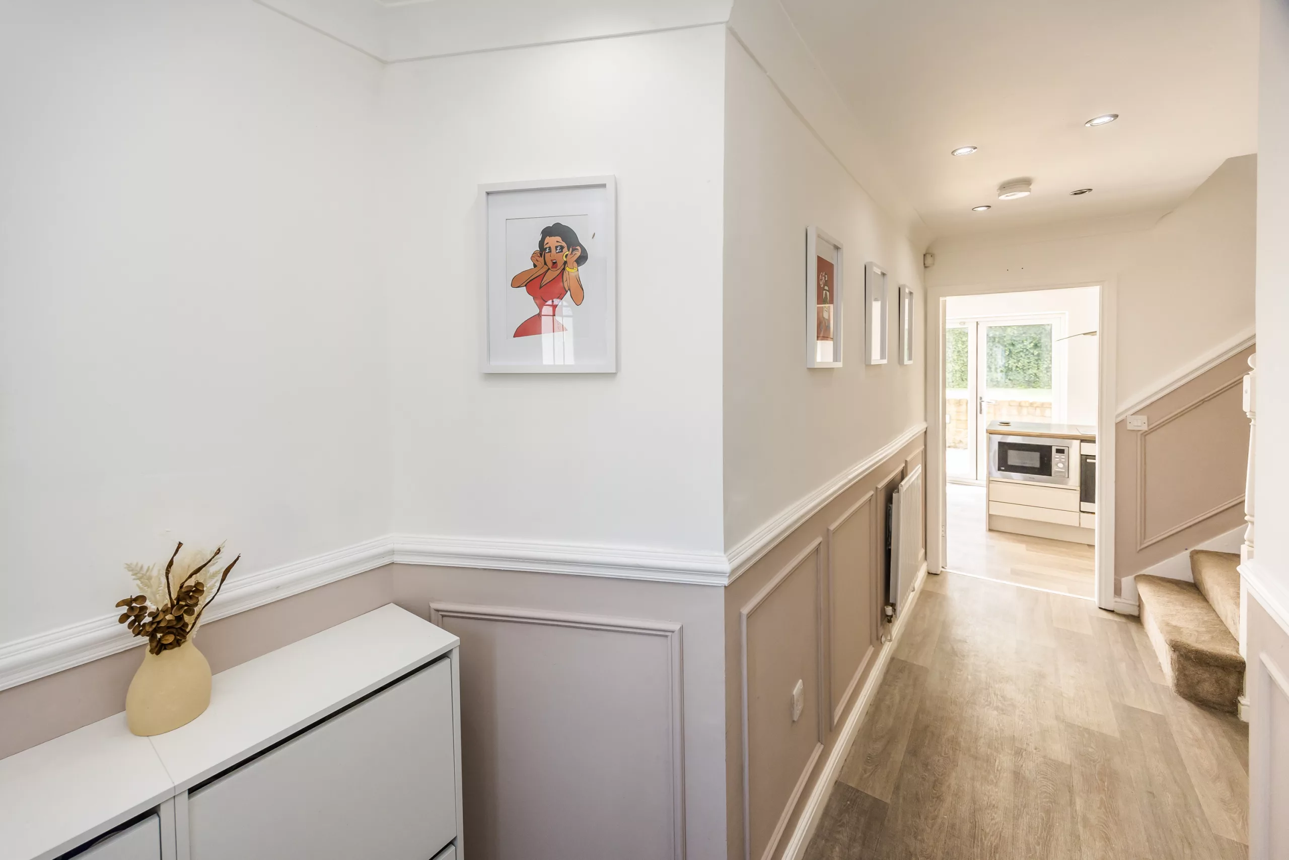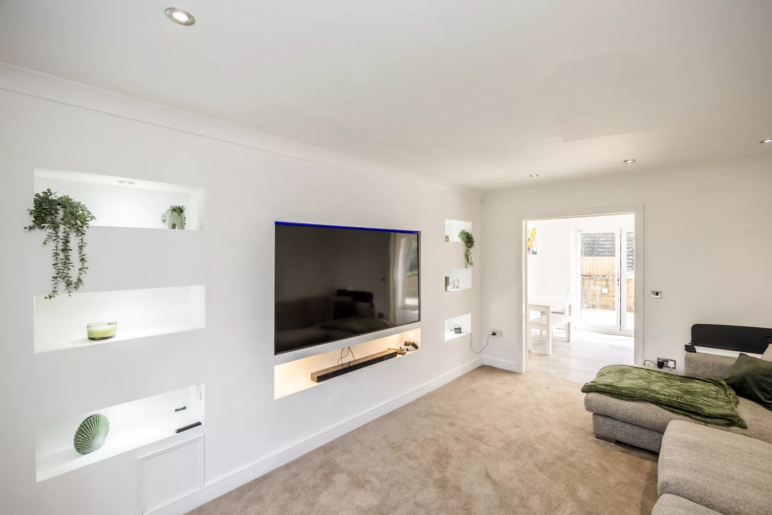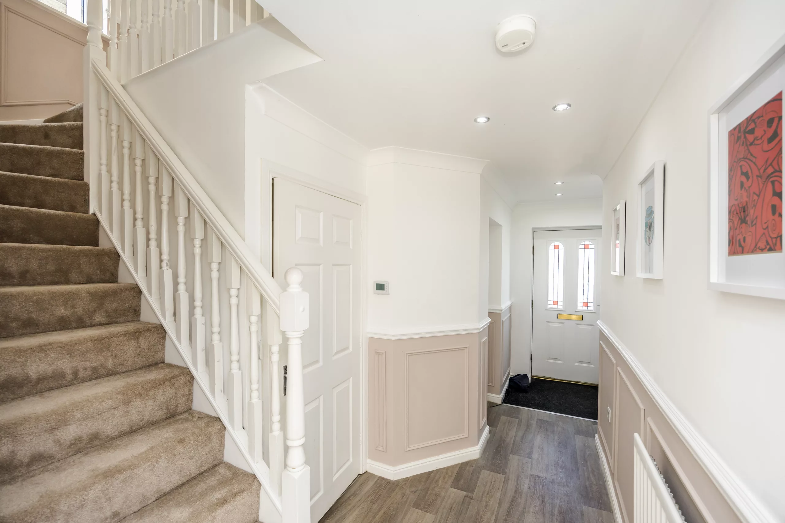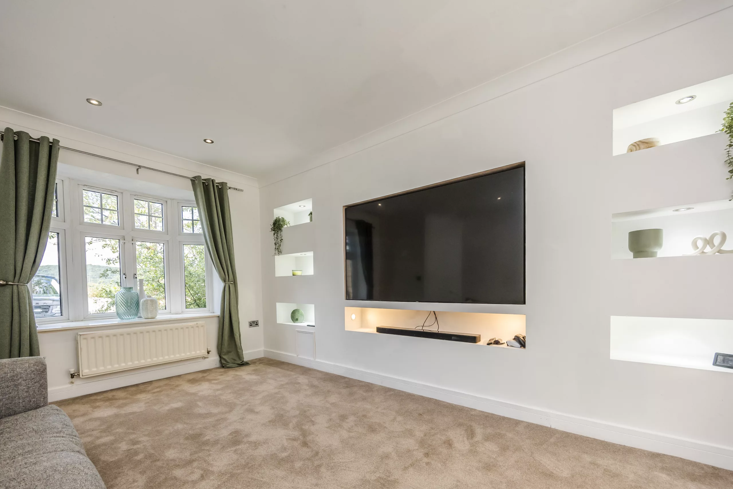 Introducing this stunning 4-bedroom detached house, a desirable property set in a prime location that promises relaxed contemporary living. Boasting NO CHAIN, this modern home offers ample space for comfortable family living. The ground floor comprises a spacious living area, a well-appointed kitchen, and a dining room awash with natural light. Ascend the staircase to discover four generously sized bedrooms, including the master bedroom with en-suite. The property features three bathrooms in total, promising convenience for family life. This beautiful home has a cosy lounge with eye catching media wall, spacious kitchen with integrated appliances and dining area, utility room and utility space with occasional room in the internal garage. With off-street parking, this property is well-positioned for those seeking easy access to local amenities, schools, and transport links. Located close to a wealth of amenities, this residence is a perfect family home for those seeking a convenient lifestyle.