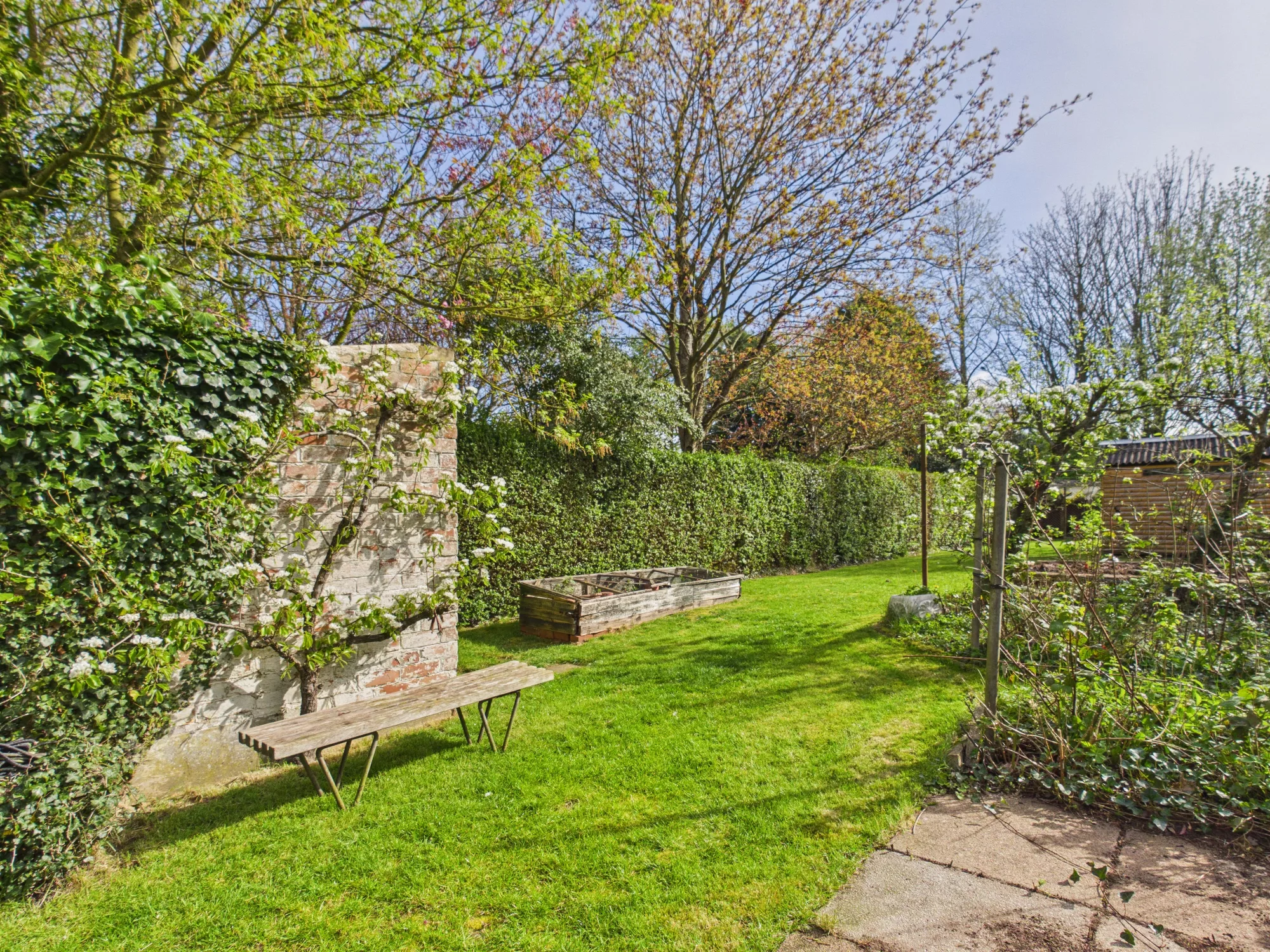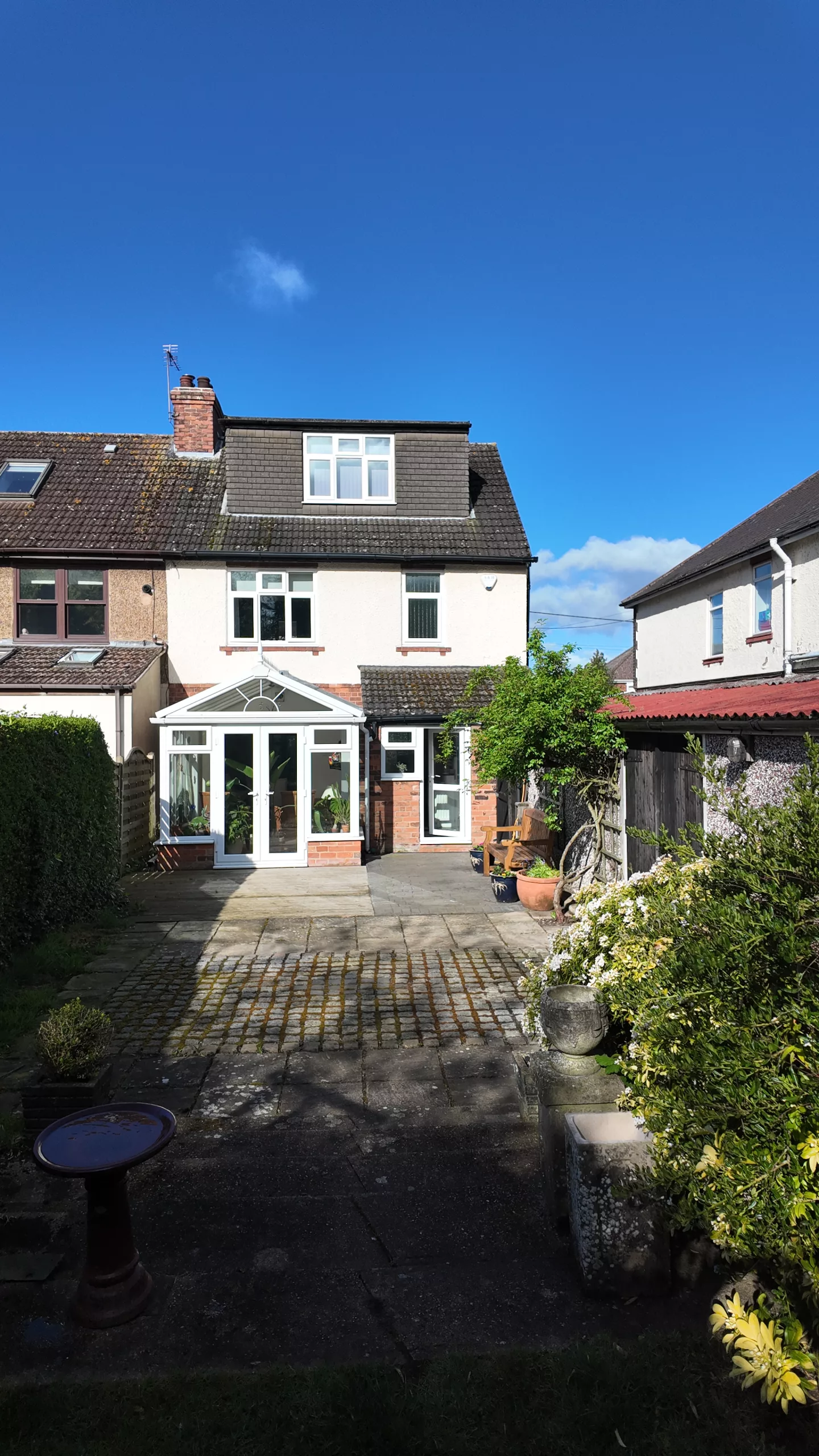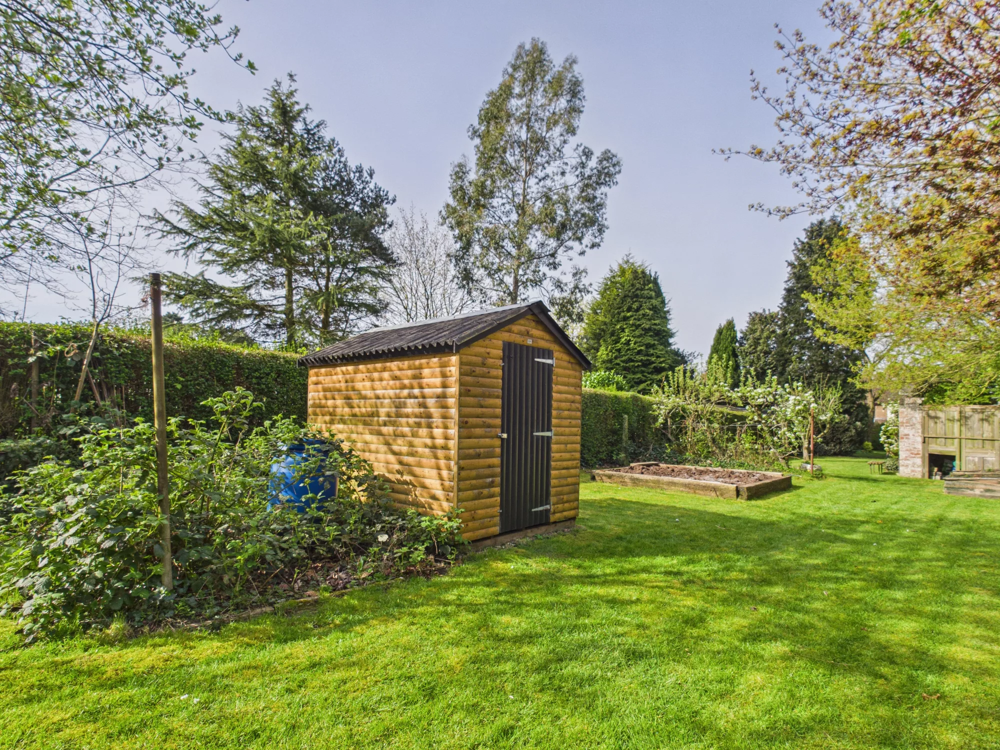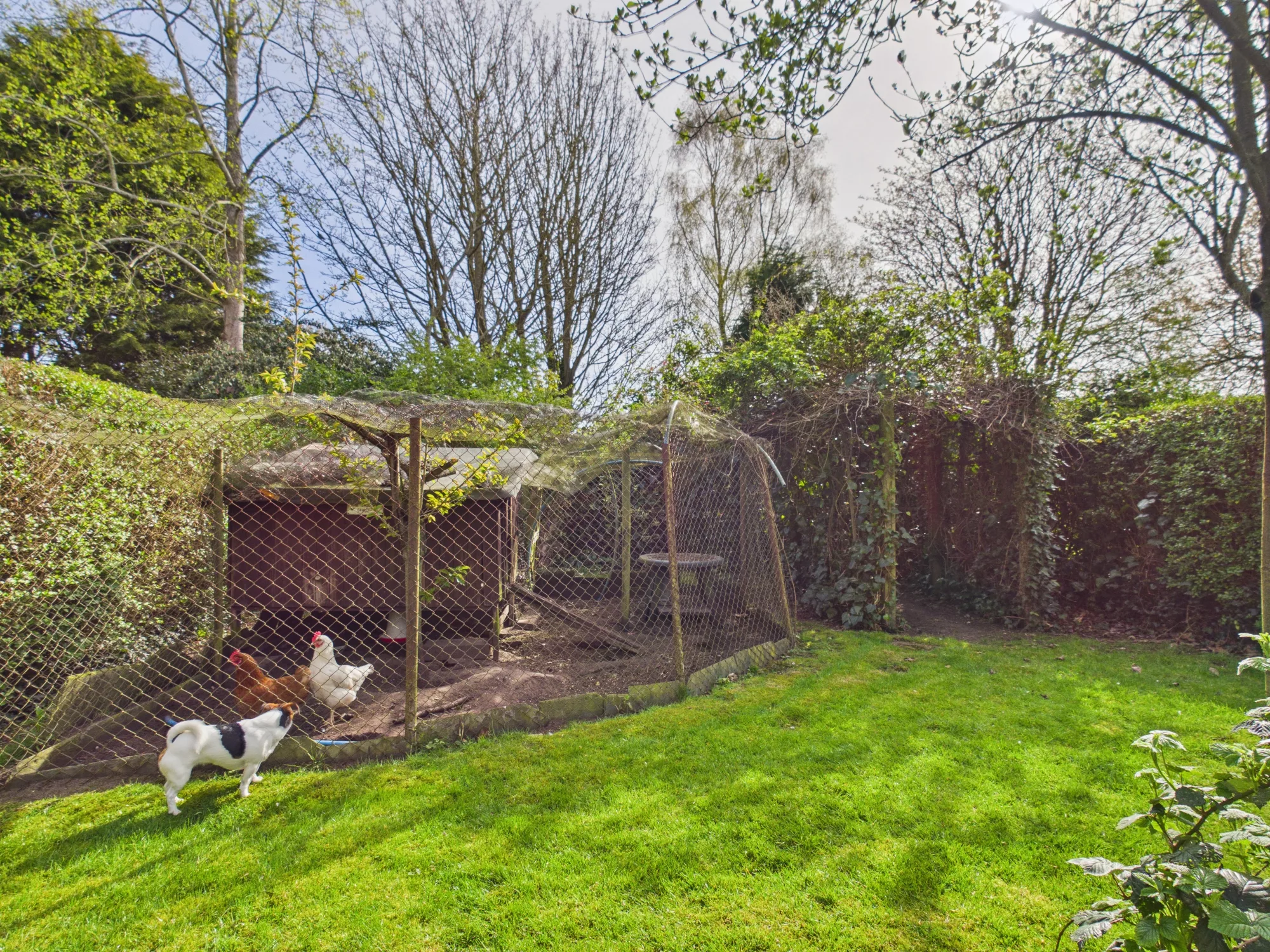 The extensive rear garden is a standout feature, thoughtfully arranged into a series of inviting spaces leading to a further surprise feature saved only for genuine potential buyers. Immediately outside the rear doors is a ground level decking area, perfect for outdoor dining or relaxing in the evening sun. Steps lead up to a lush green lawn and further garden sections, including a dedicated planting area with a shed—ideal for keen gardeners and home-grown produce enthusiasts. A charming enclosed chicken coop, retained from the previous owners, adds a unique and characterful touch and could easily be adapted or removed to suit. At the bottom of the garden, a secluded hidden area provides a truly special retreat—an idyllic setting for a fire pit, quiet escape, or even a creative outdoor workspace, offering exceptional versatility and privacy.