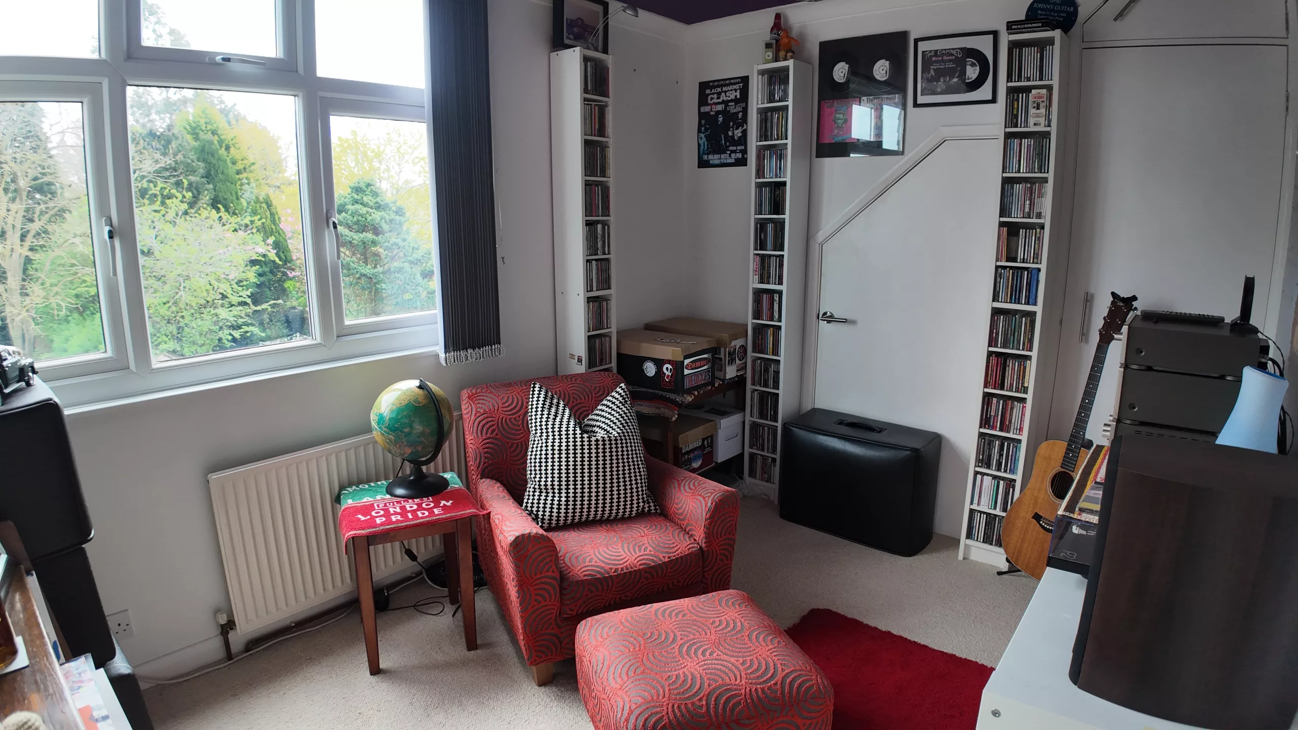 This versatile fourth bedroom enjoys a pleasant outlook over the garden through a well-positioned window, creating a light and calming atmosphere. Currently used as a characterful “man cave”, the space offers a relaxed and inviting hangout area, ideal for hobbies or unwinding. Full of personality, it includes integrated storage and generous floor space, providing excellent flexibility for a variety of uses. With its cosy yet quirky feel and sentimental touches, this is a room that can easily adapt to suit individual needs.