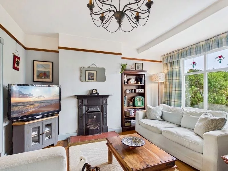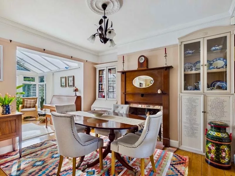 This stunning front-facing living room is beautifully bright and inviting, enhanced by an elegant bay window that floods the space with natural light. A charming fireplace provides a cosy focal point, perfectly complemented by warm wooden flooring that adds both character and comfort. Ideal for entertaining guests or simply unwinding at the end of the day, this versatile room offers a welcoming setting for both relaxation and social gatherings. Wooden French door access through to the open plan dining area.