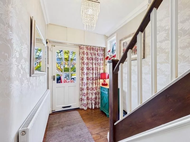 This beautiful feature front door sets the tone for the rest of the property, which is rich in traditional character. This immaculate space is warm and welcoming and creates a lasting first impression, offering a glimpse into the unique style and quality that runs through the home. The entrance features a wooden floor with windows to side elevation and a radiator to provide warmth in the colder months. Feature staircase to first floor and access to downstairs WC.