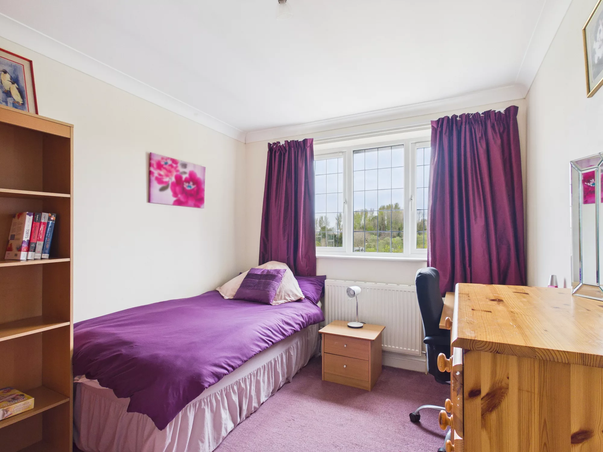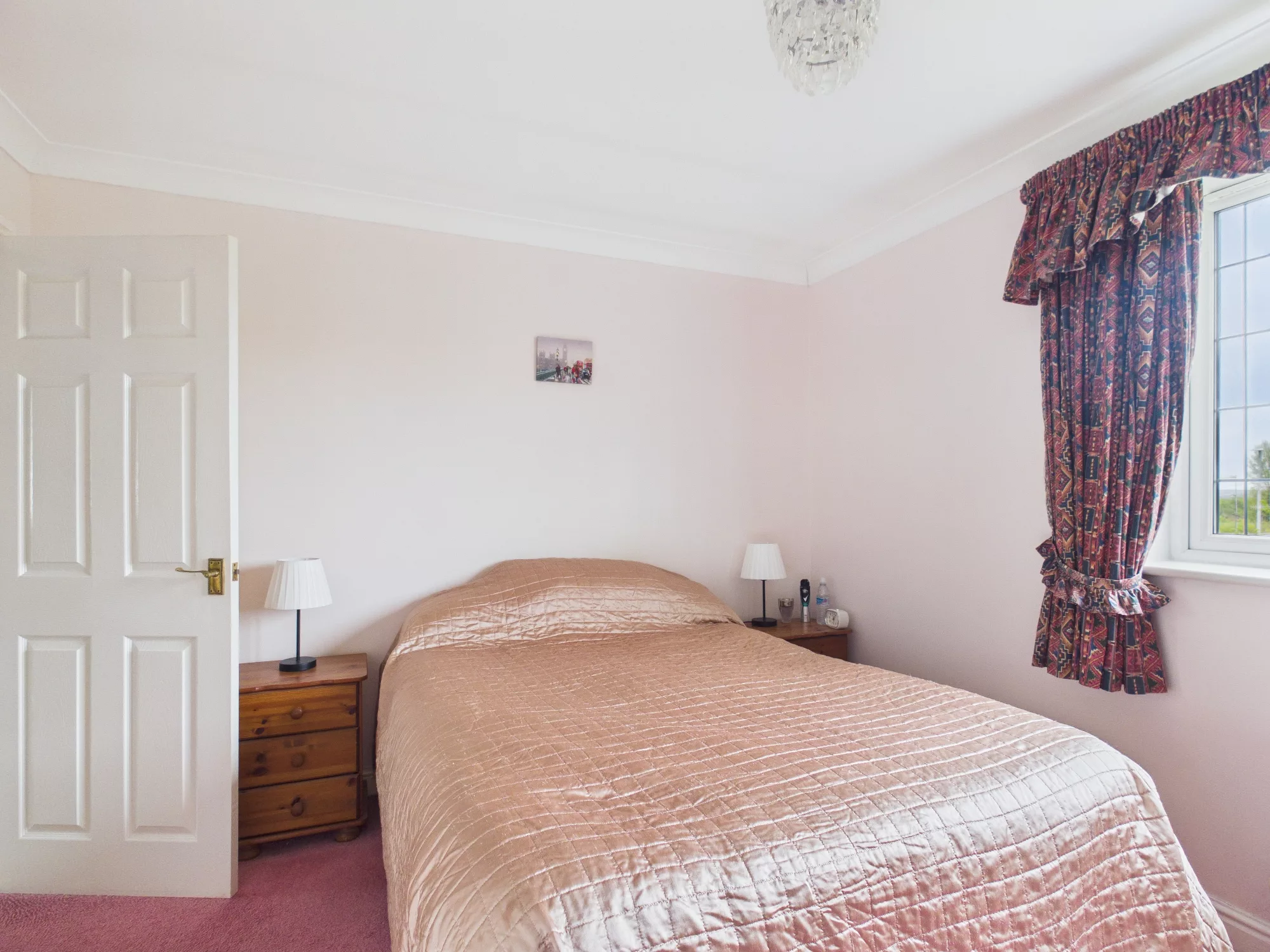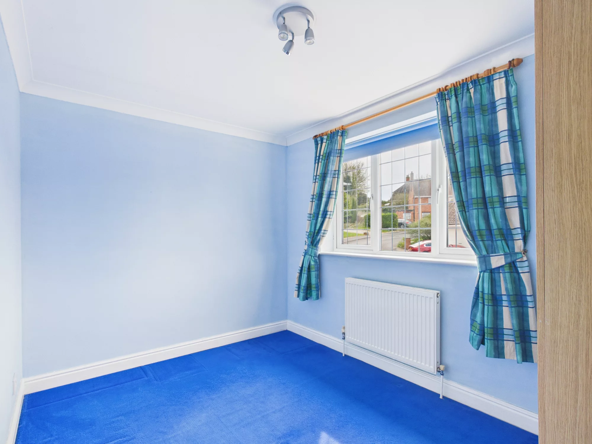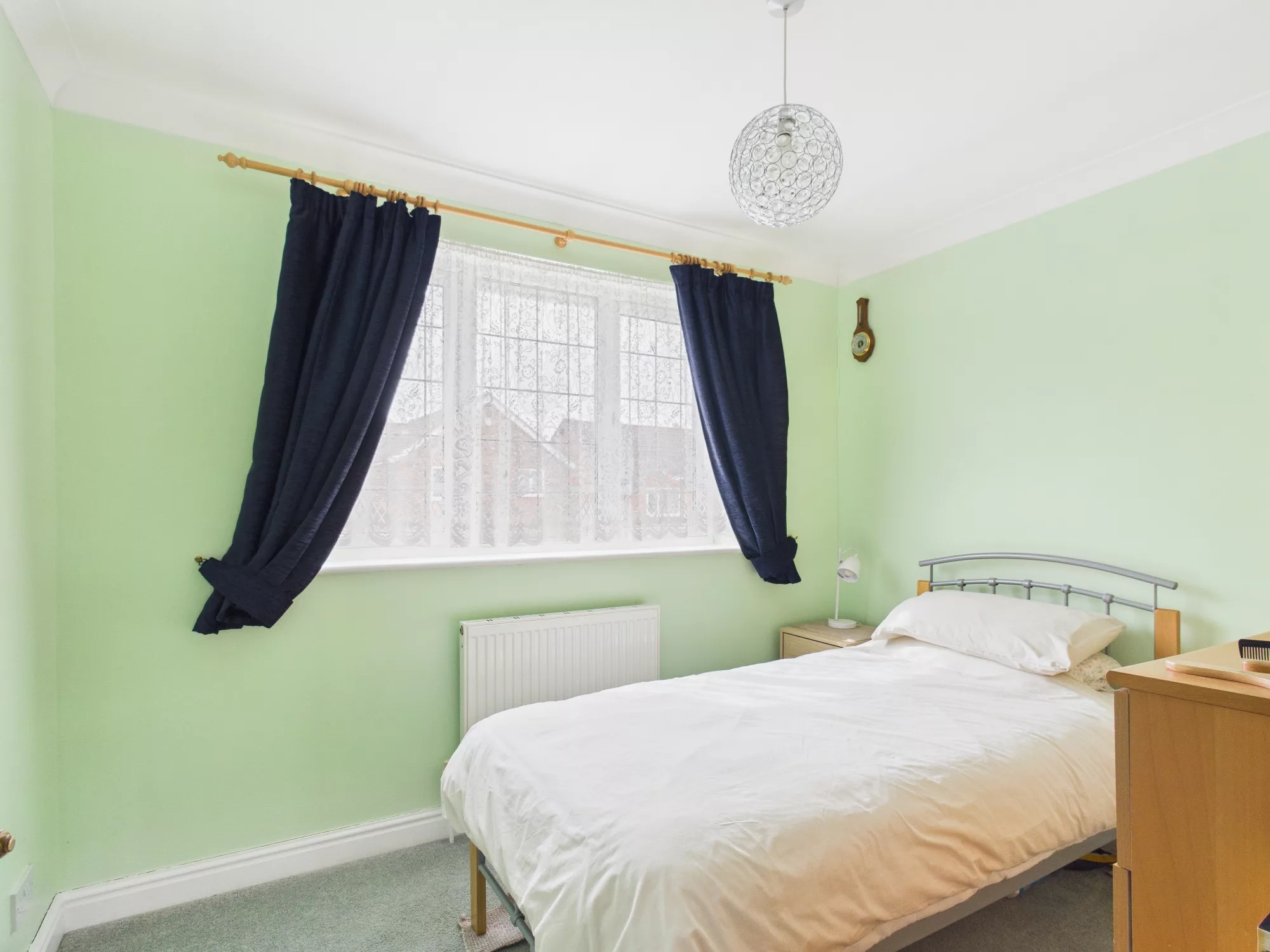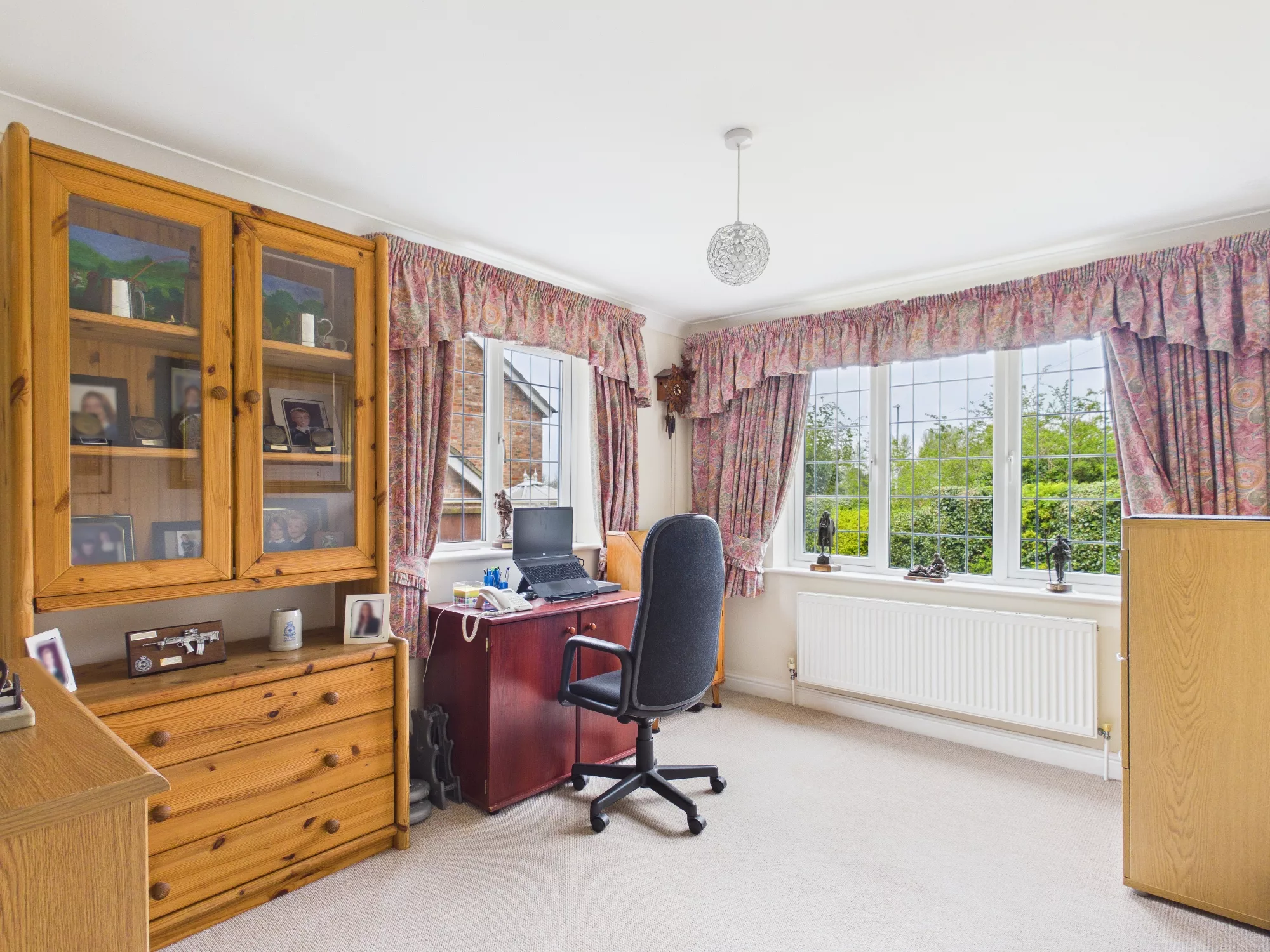 Light filled bedroom number four. Generous sized double room with window to the front elevation. Radiator and carpeted. Window overlooking the front garden and drive.