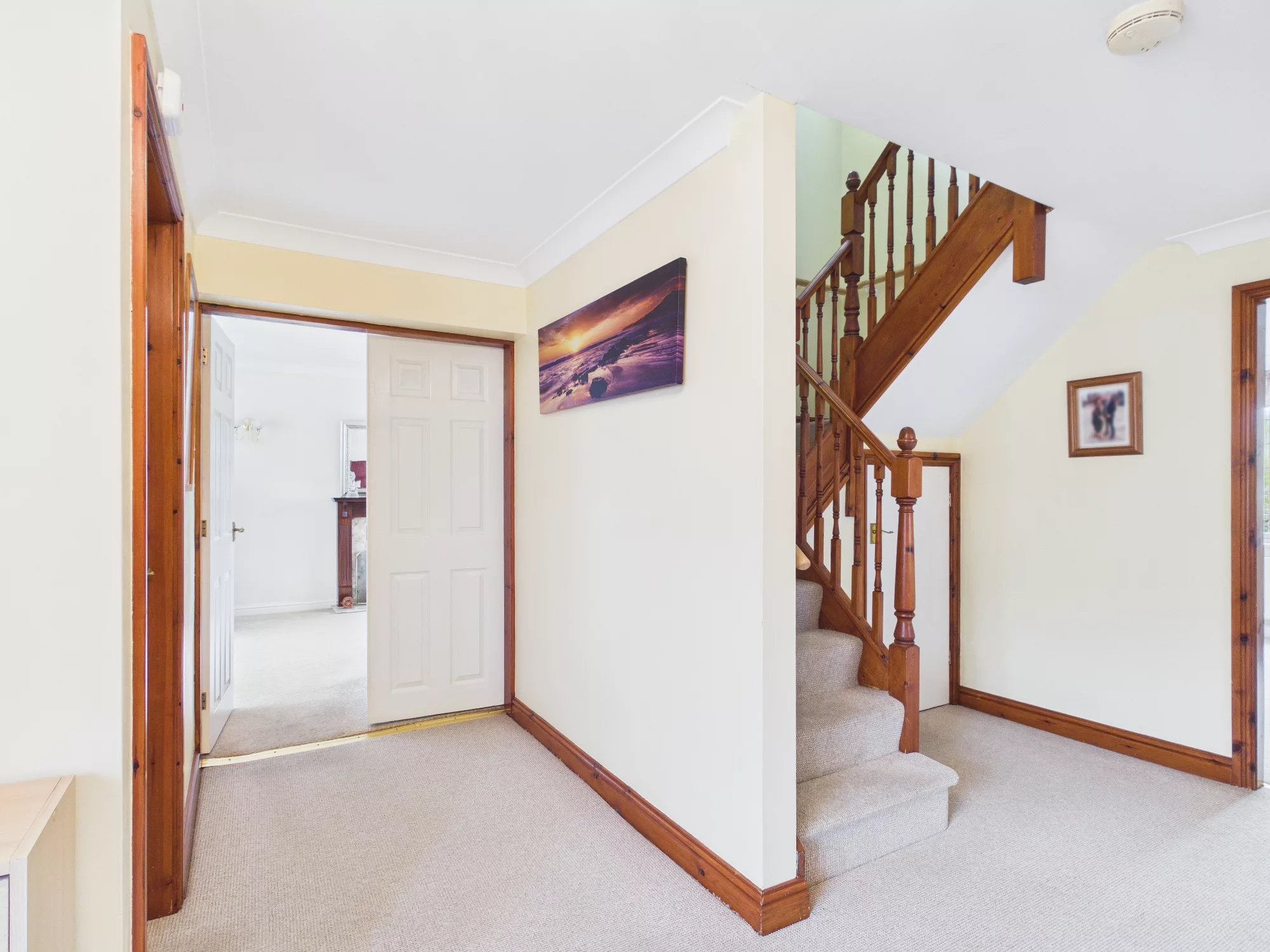 Spacious entrance hall with access to all downstairs rooms and stairway. This bright and airy room is filled with natural light