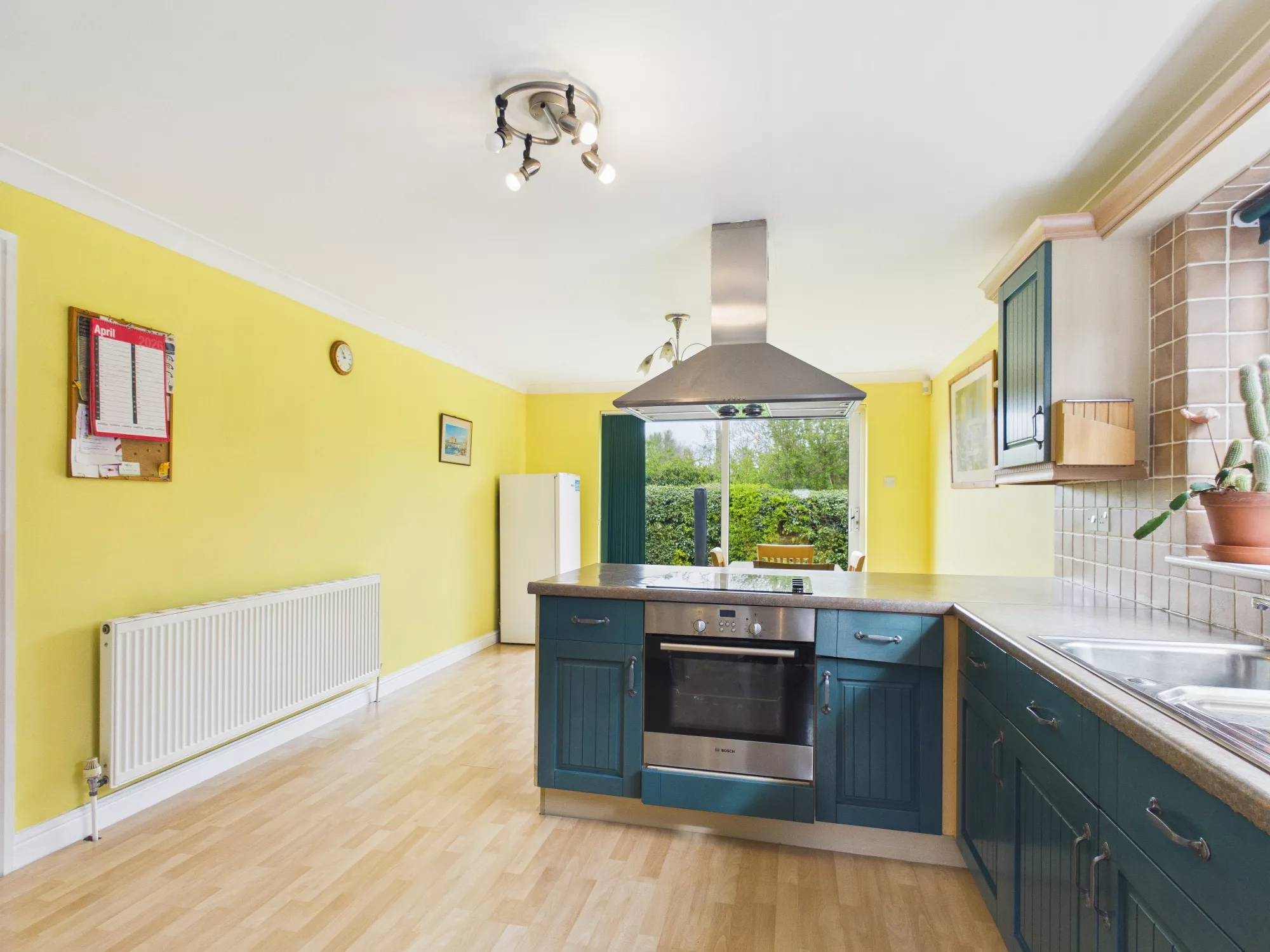 This well appointed kitchen come dining room is filled with natural light. It a generous space for any family. With views over the rear garden and side this really is the heart of the home. It comes with integrated oven and hob and extractor hood. Sink with tap. Plenty of space for a table and chairs and room to expand the kitchen. Utility room is off the kitchen.