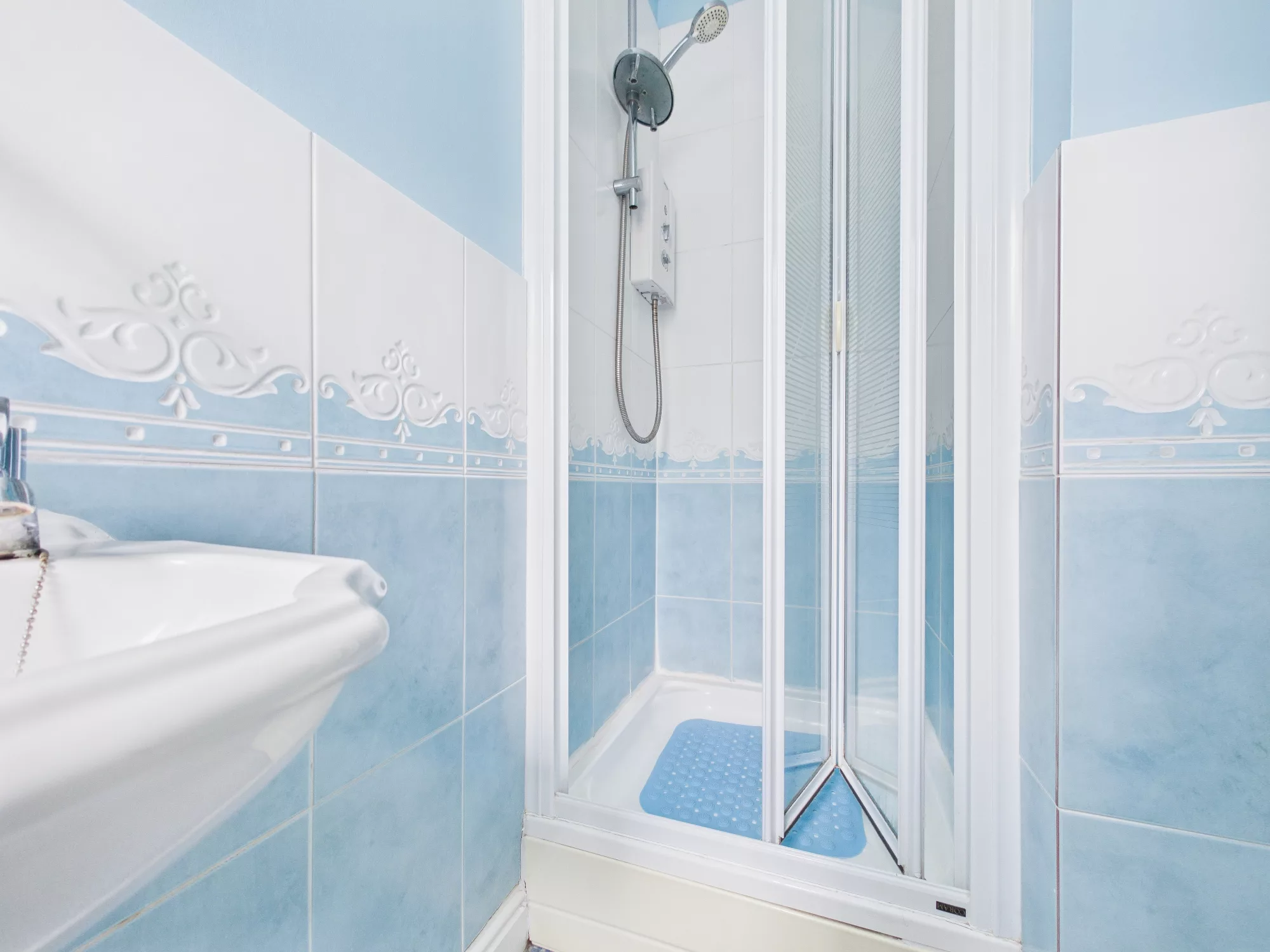 Well appointed En-Suite with walk in shower cubicle and low level toilet & sink. Light filled room and partially tiled.