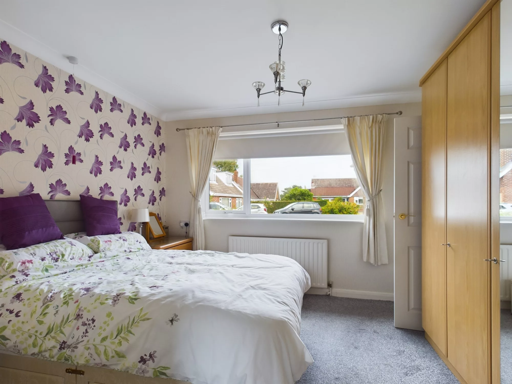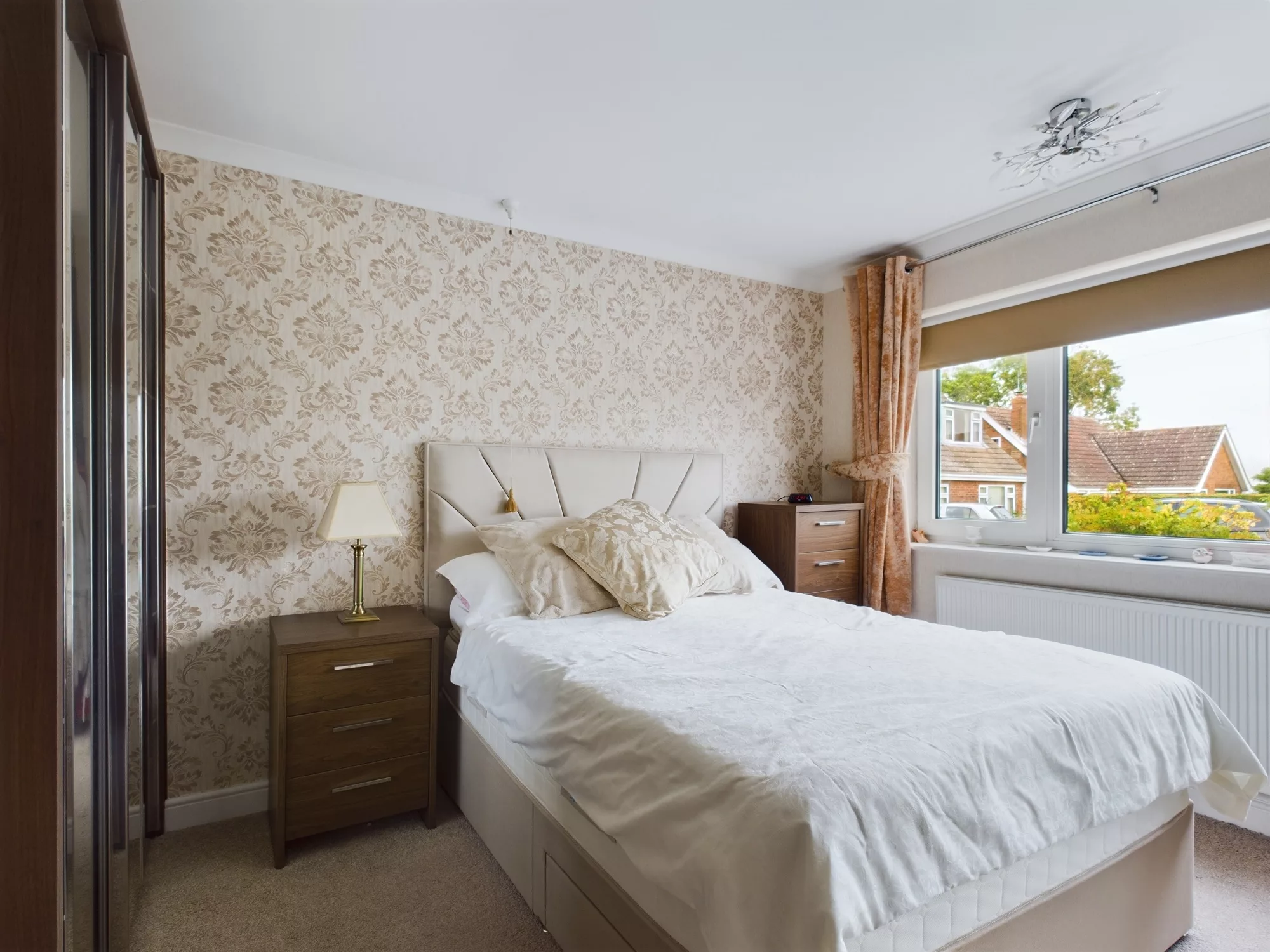 Bedroom Three is a versatile and well-proportioned room, benefiting from fitted wardrobes for convenient storage. A set of doors provides direct access to the conservatory, allowing for an abundance of natural light and a seamless indoor-outdoor connection. The room also features a central heating radiator and is finished with elegant ceiling coving, offering both comfort and traditional appeal.