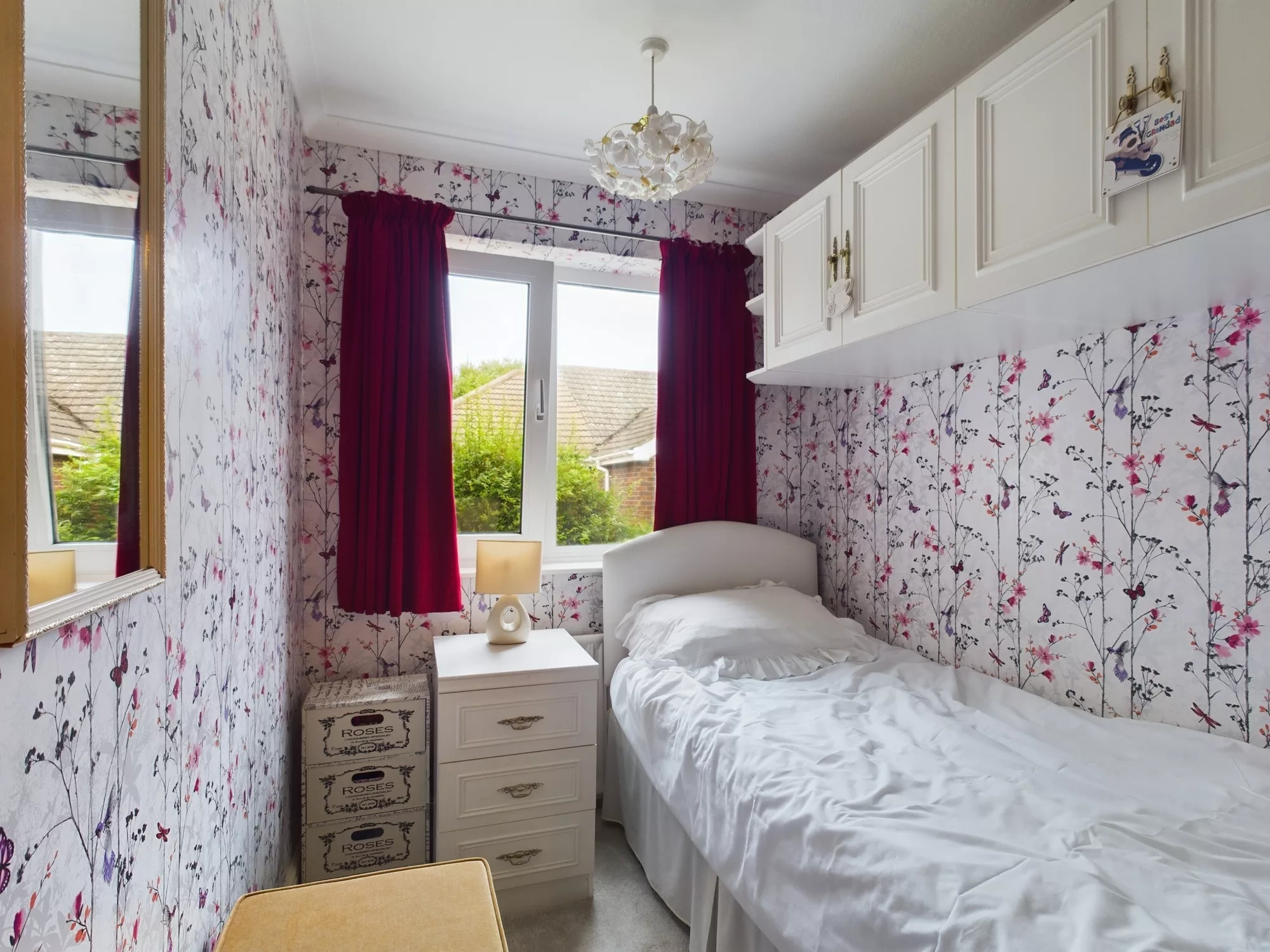 Bedroom Four is a charming single room, ideal as a guest room, nursery, or study. A UPVC double glazed window to the side elevation provides natural light, while a central heating radiator ensures a comfortable environment. The room is tastefully finished with ceiling coving, adding a subtle touch of character.