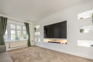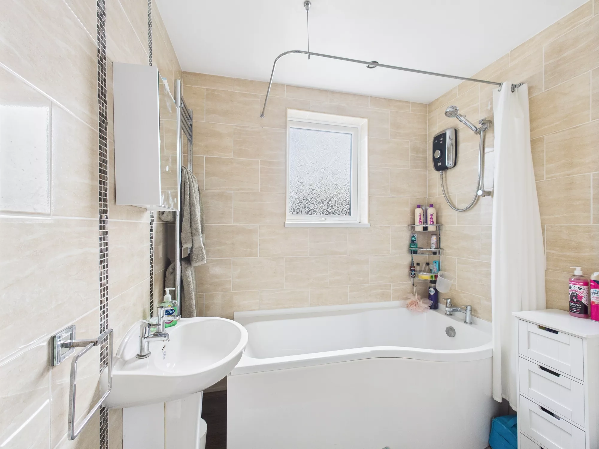 Upstairs, the home continues to impress with three generously sized bedrooms, all finished in tasteful décor and offering plenty of natural light. The family bathroom is well-appointed and modern, providing a comfortable and functional space for all the household.