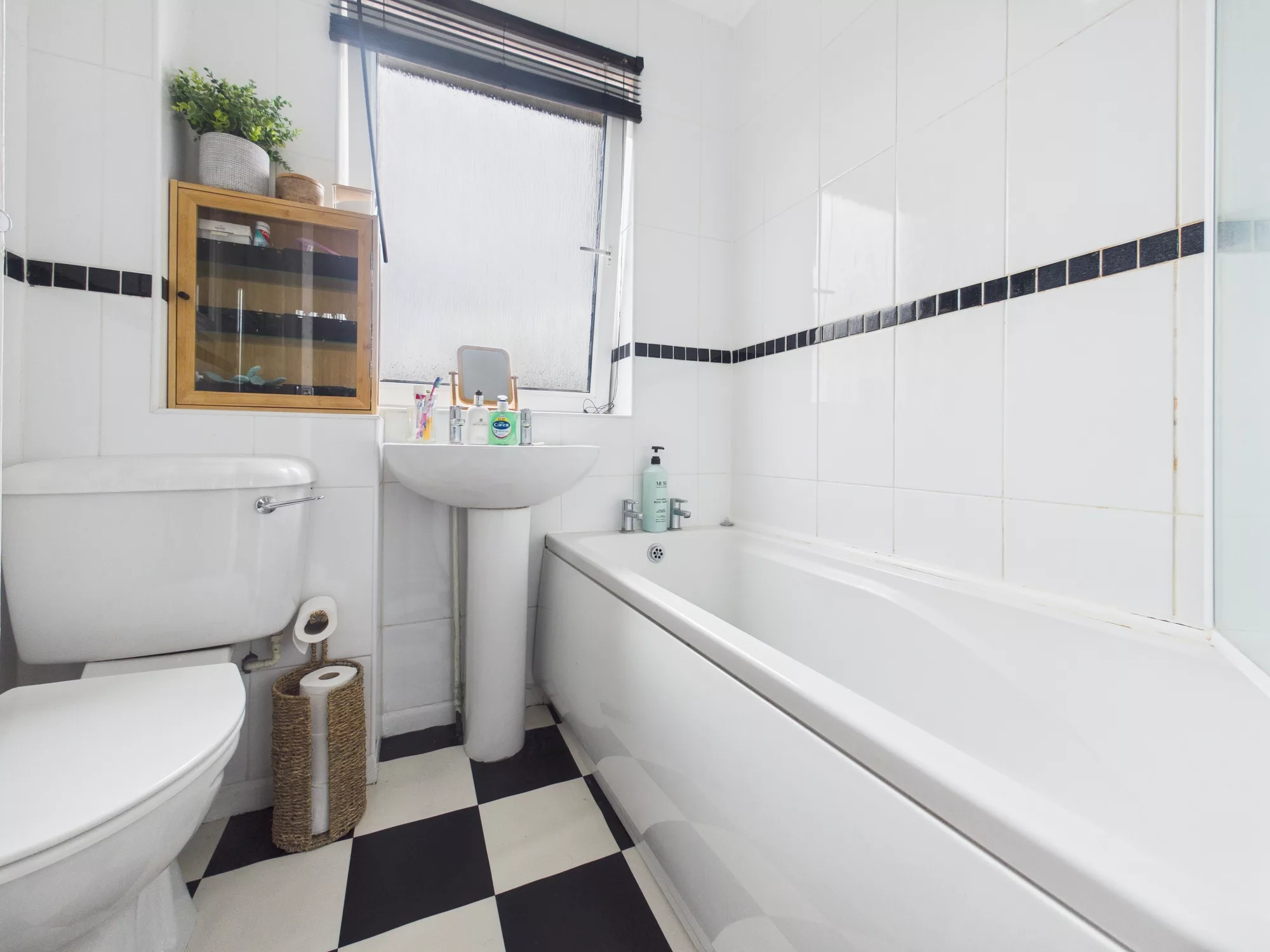 Upstairs, the property offers three well-proportioned bedrooms, two of which are comfortable doubles. The third bedroom would make an ideal nursery, home office or guest room. The family bathroom is fitted with a bath with overhead shower, wash basin, W.C. and heated towel radiator.