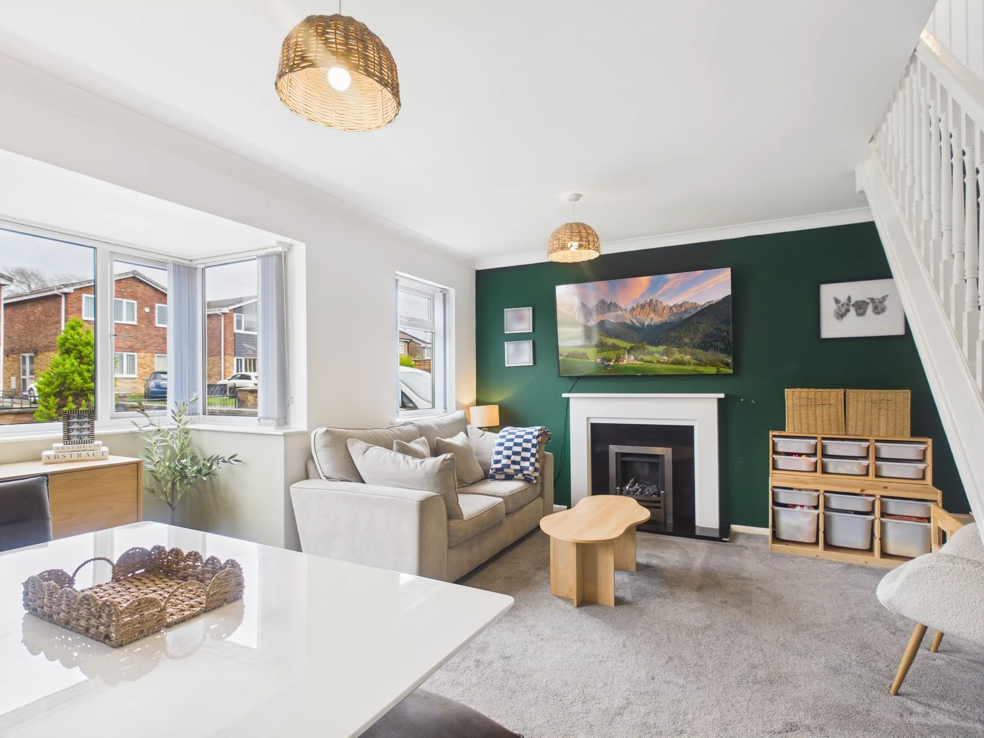 Step inside and you are welcomed by a spacious and inviting lounge, filled with natural light from the attractive bay window to the front elevation. A charming feature fireplace creates a cosy focal point, making this the perfect space to relax and unwind. Stairs rise from the lounge to the first-floor landing, maintaining a traditional and homely layout.