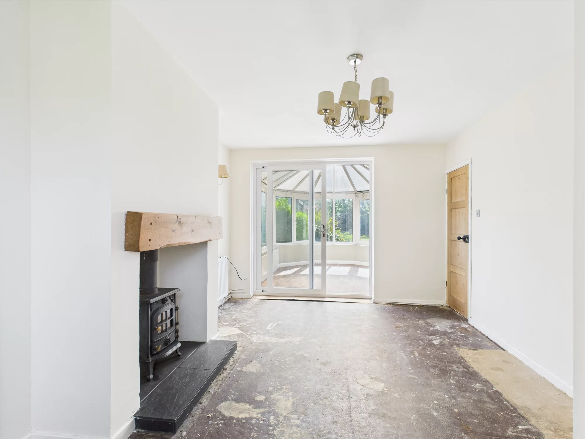 The property has been recently refreshed throughout, providing a clean and modern blank canvas for any discerning purchaser to make their own. It features a welcoming lounge complete with a cosy log-burning stove, creating the perfect setting for relaxing evenings. A spacious conservatory overlooks the rear garden, while the modern dining kitchen boasts sleek white high-gloss units and integrated appliances — ideal for everyday living and entertaining.