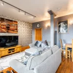 Upon entering, you are greeted by a spacious and bright living area that seamlessly flows into the open-plan kitchen. The kitchen is fitted with sleek, high-quality appliances and ample storage space, making it a culinary delight for any aspiring chef. This home features two bedrooms, both generously sized and flooded with natural light, providing a tranquil retreat for relaxation and rest. The master bedroom benefits from an en-suite bathroom, ensuring privacy and convenience for its occupants. Additionally, there is a second modern four piece suite bathroom that serves the other bedroom and guests.
