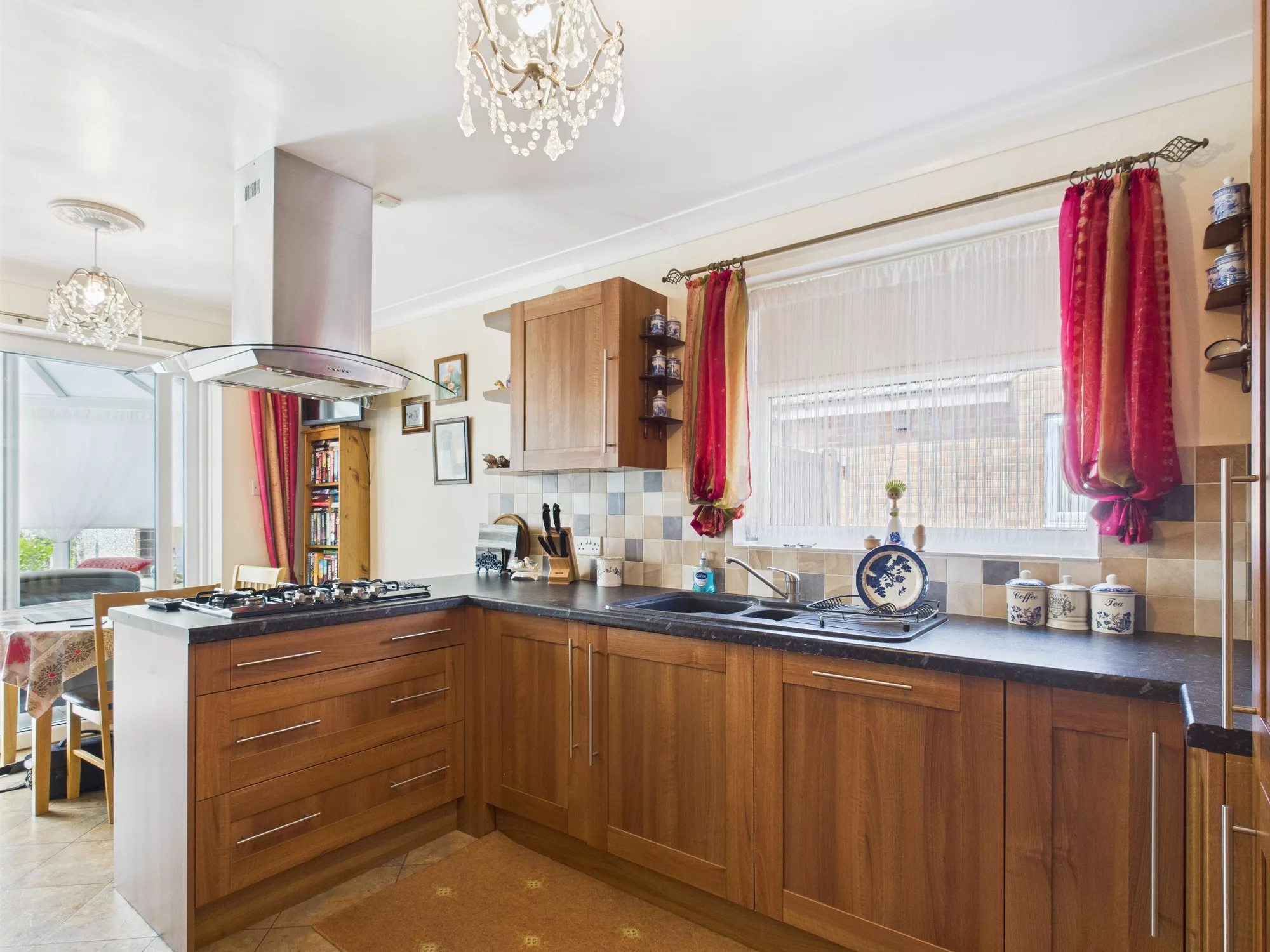 With a light and airy feel throughout, this charming home offers two well-proportioned bedrooms, with the main bedroom featuring high-quality fitted furniture. The stylish modern kitchen is equipped with built-in appliances and a practical peninsular unit, complemented by a ceiling-hung chimney extractor — perfect for everyday living and entertaining.