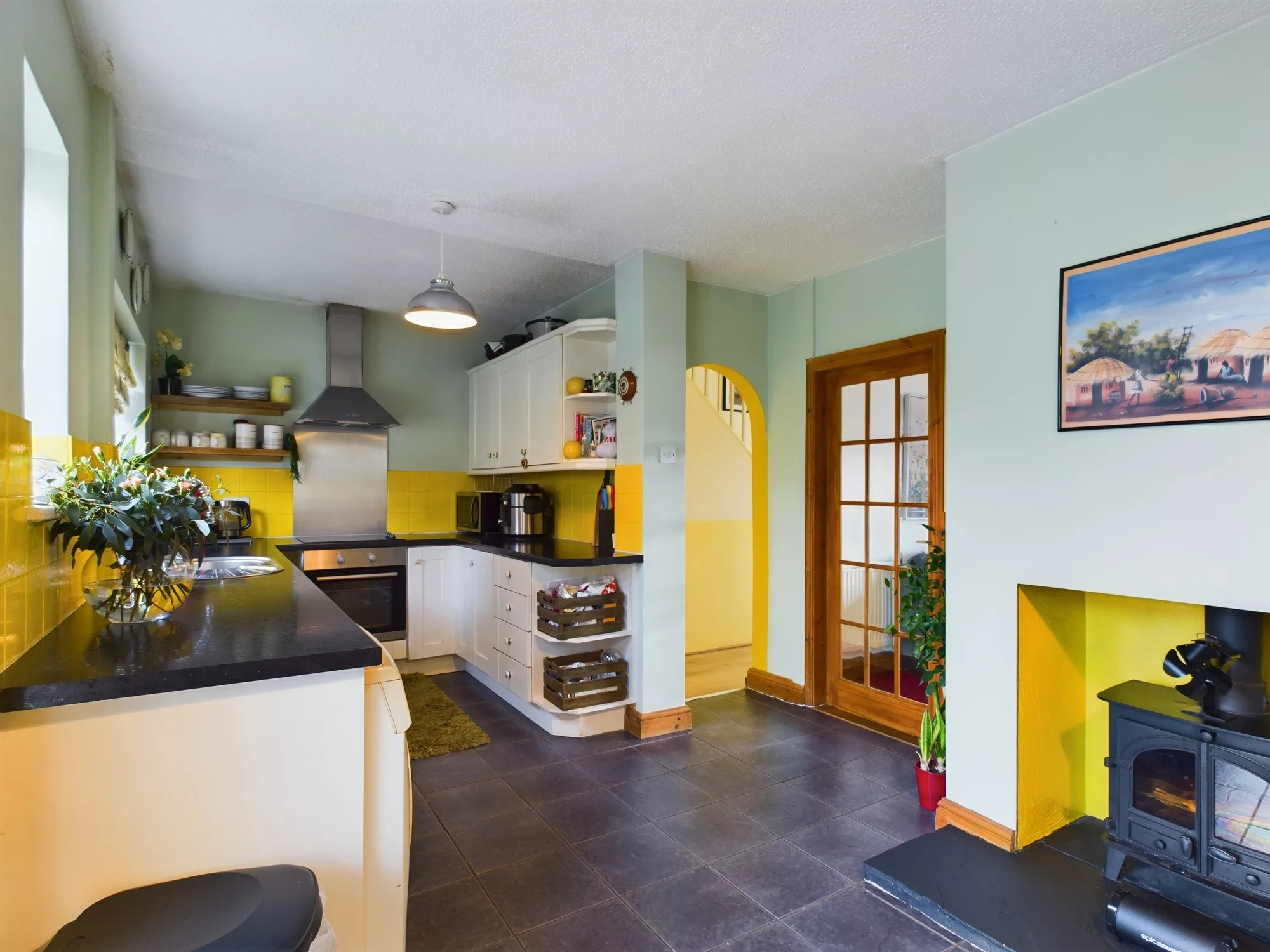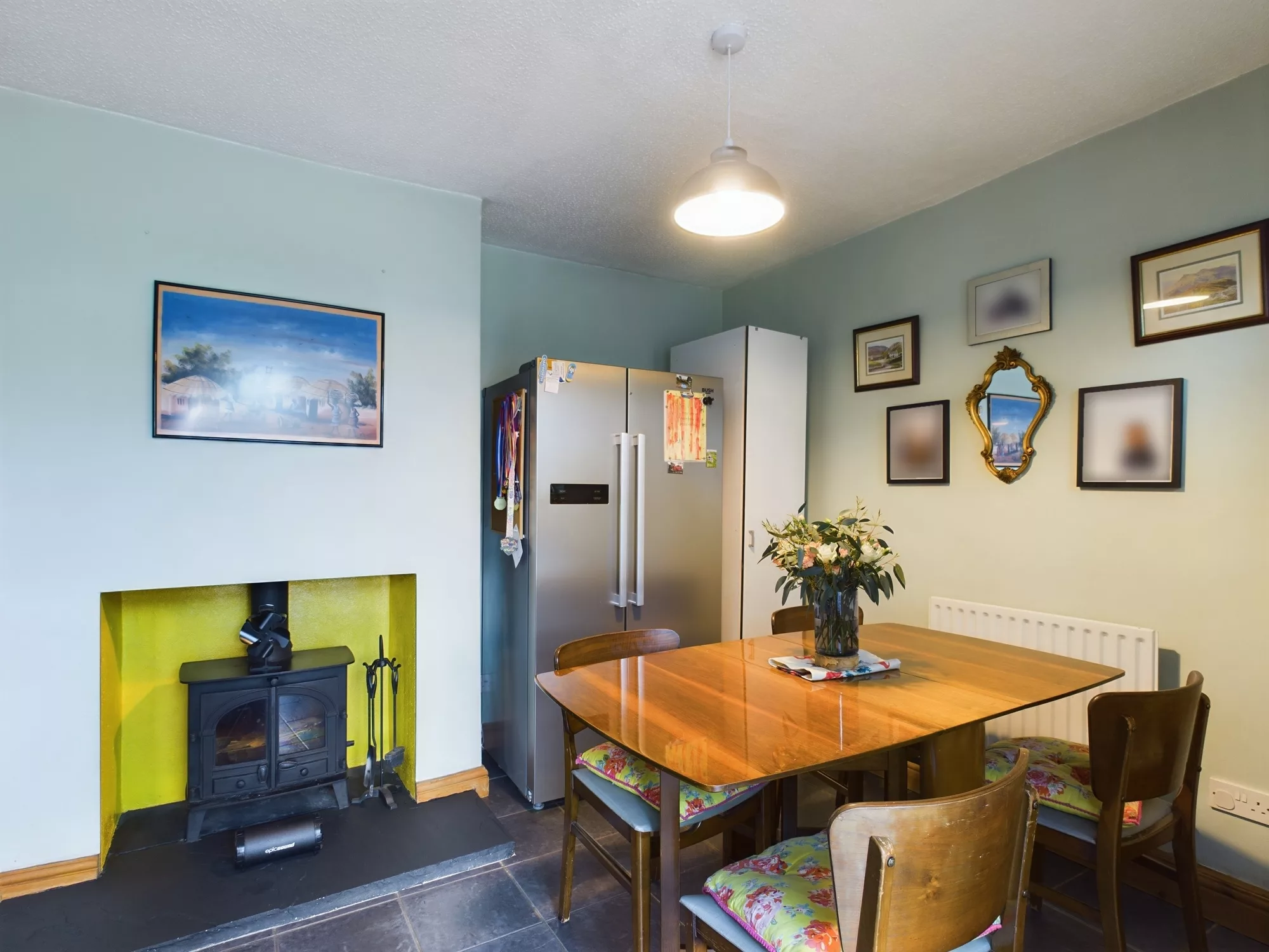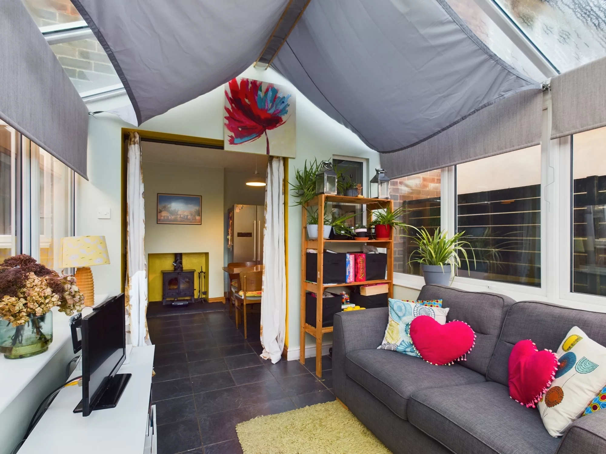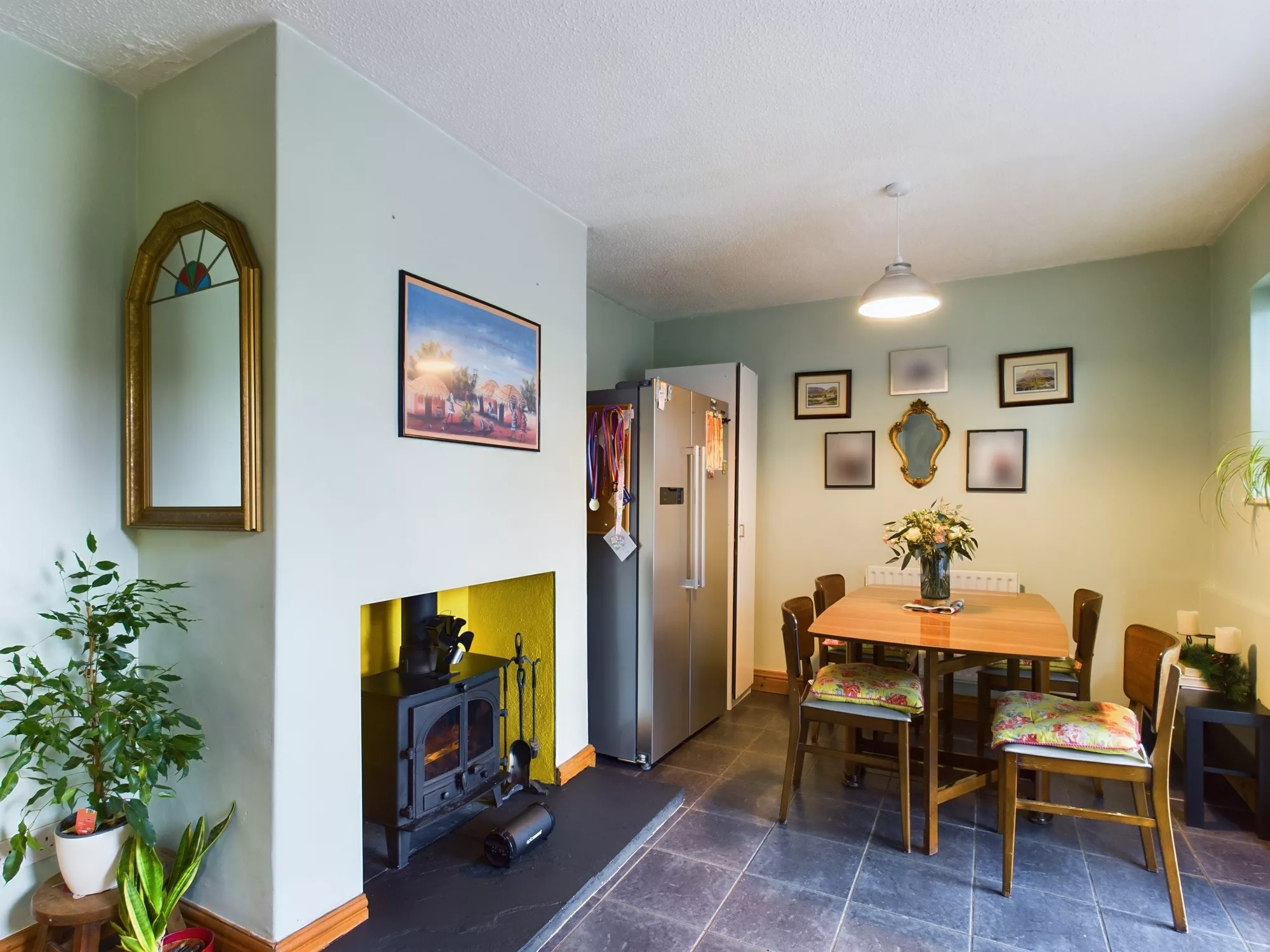 As you approach the property, you'll immediately notice the smartly extended front porch—offering both a welcoming entrance and practical storage space for coats, shoes, or pushchairs. Step inside and you're greeted by a warm and characterful living room, featuring a log burner that creates a cosy focal point for relaxing evenings.