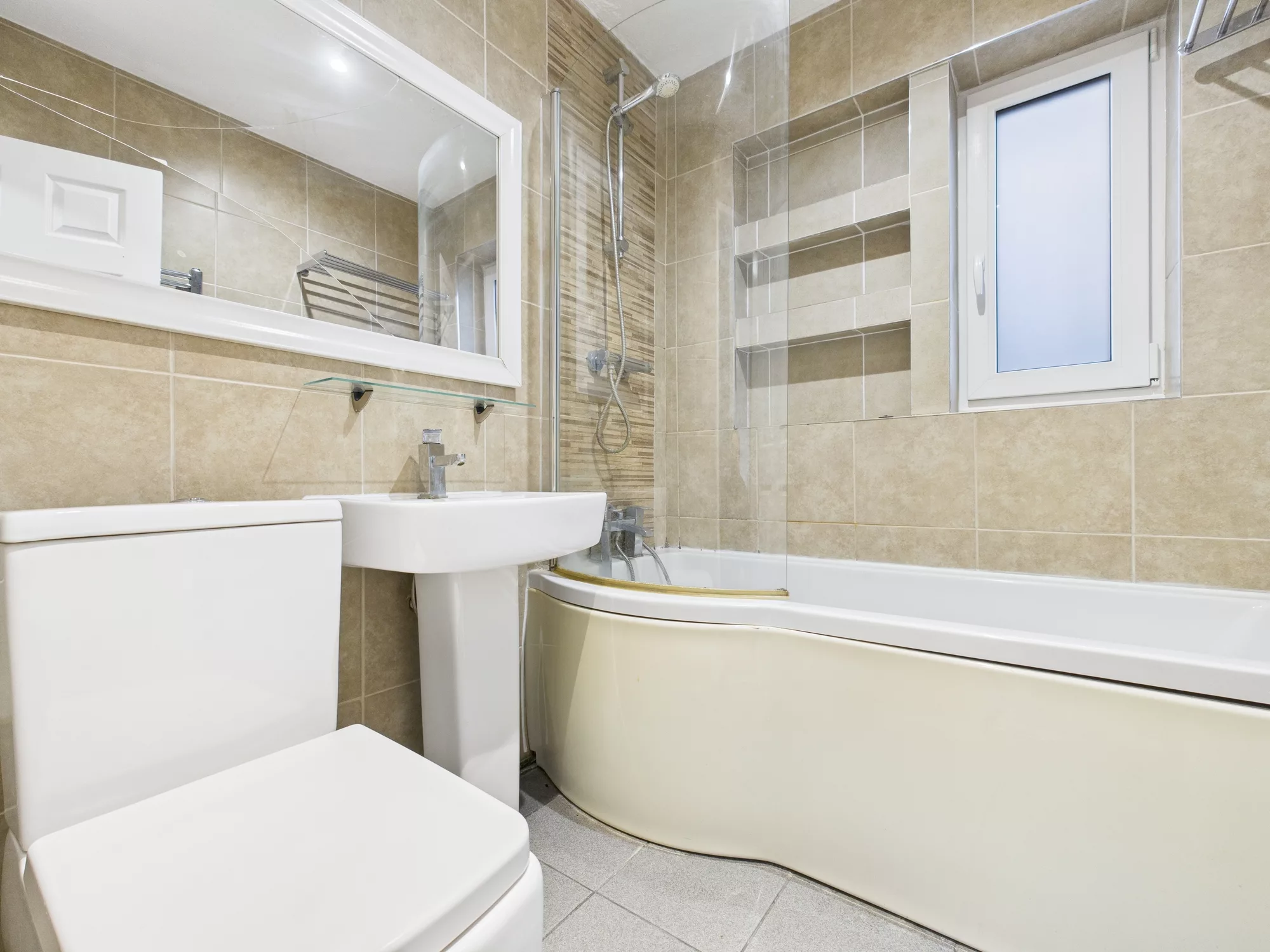 The generously sized reception room offers a bright and comfortable space to relax or entertain, enhanced by newly fitted blinds. Completing the ground floor is a family bathroom featuring a WC, wash basin, bath with overhead shower and a stylish towel radiator.