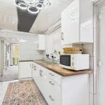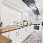 Enjoy a cosy snug for relaxing evenings, and a modern kitchen boasting ample storage, wooden countertops, and integrated appliances. A useful storage room connects to the garage, adding practicality to style.